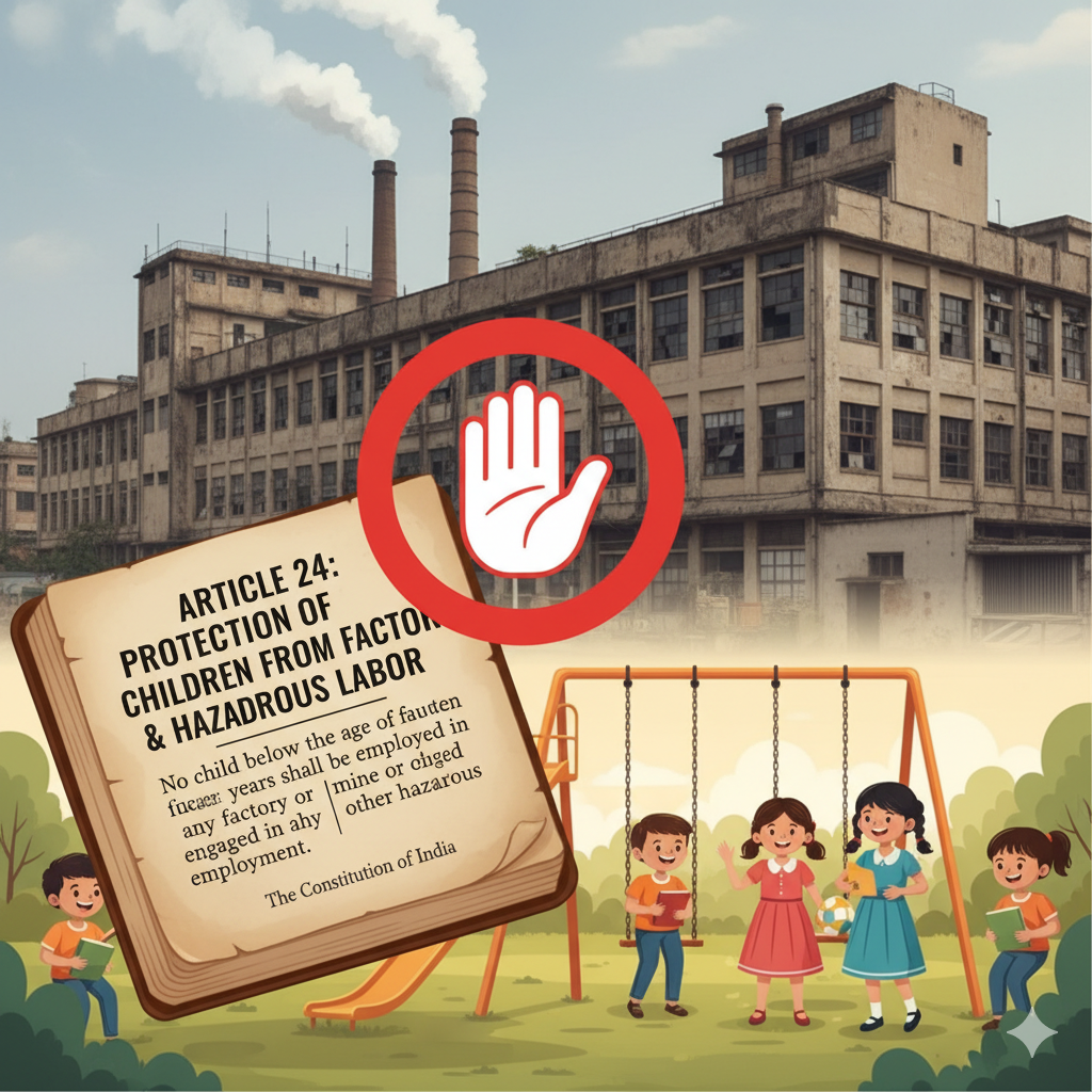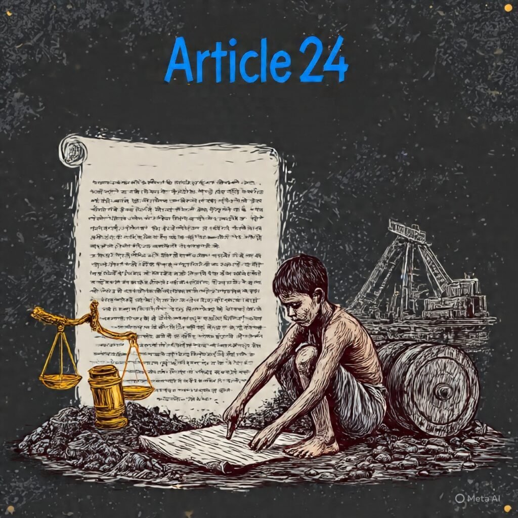 भारत का संविधान केवल नागरिकों के अधिकारों की सुरक्षा नहीं करता, बल्कि समाज के सबसे कमजोर वर्ग — बच्चों — की भी रक्षा करता है। अनुच्छेद 24 (Article 24) इसी दिशा में एक मजबूत कदम है, जो यह सुनिश्चित करता है कि 14 वर्ष से कम उम्र के बच्चों को किसी भी खतरनाक उद्योग, फैक्ट्री या खदान में काम पर नहीं लगाया जाएगा। आज जब भारत दुनिया की सबसे बड़ी युवा आबादी वाला देश है, तब यह अनुच्छेद केवल कानूनी नहीं, बल्कि सामाजिक और मानवीय दृष्टि से भी अत्यंत आवश्यक बन जाता है।