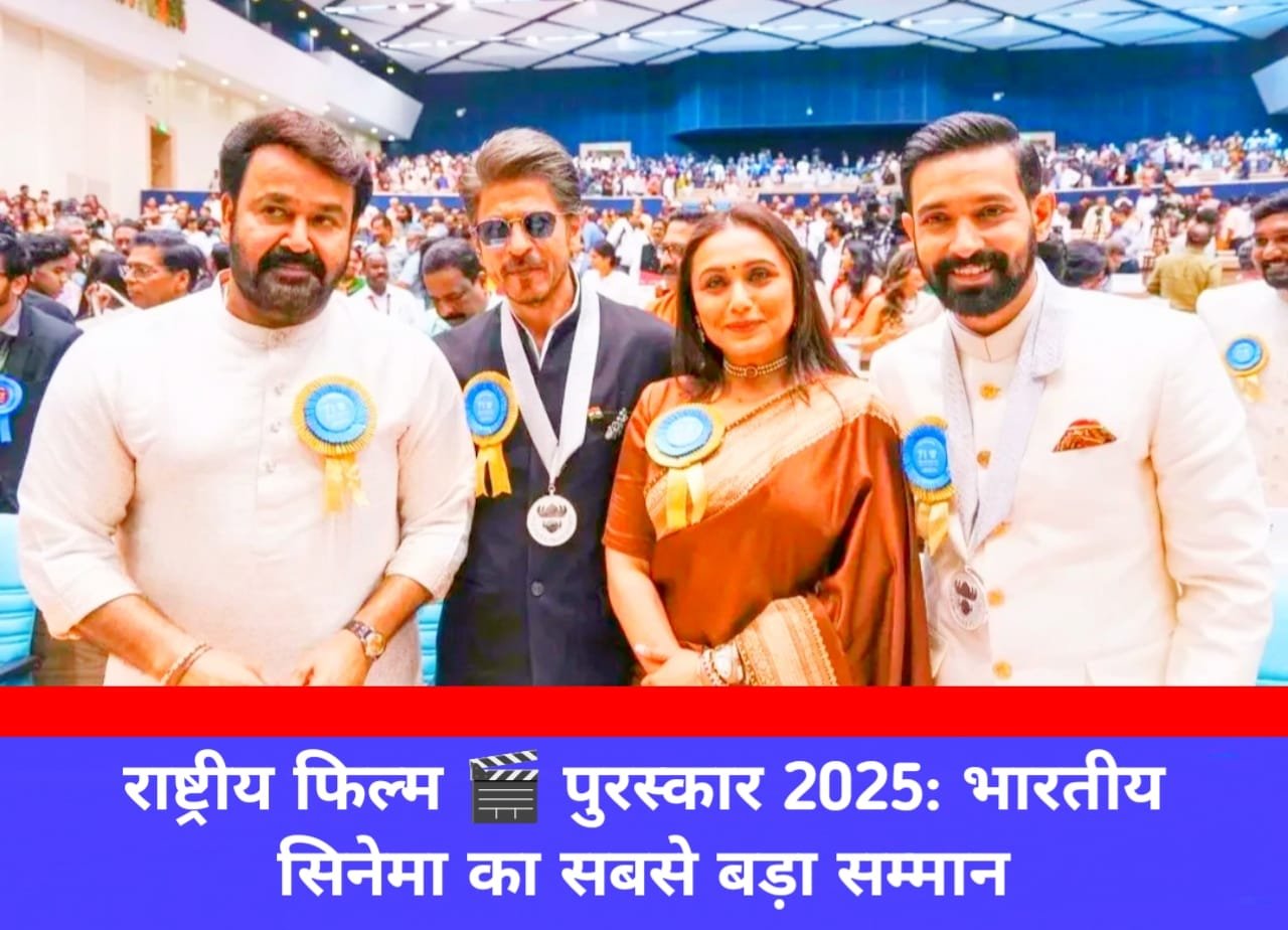 राष्ट्रीय फिल्म पुरस्कार 2025 (National Film Awards) में शाहरुख़ ख़ान (Jawan), विक्रांत मैस्सी (12th Fail) और रानी मुखर्जी (Mrs. Chatterjee Vs Norway) को मिला बड़ा सम्मान। जानिए किसे और क्यों मिला यह प्रतिष्ठित पुरस्कार।
