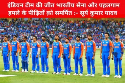 इंडियन टीम की जीत भारतीय सेना और पहलगाम हमले के पीड़ितों क़ो समर्पित :- सूर्य कुमार यादव मैच के बाद कप्तान का संदेश भारत और पाकिस्तान के बीच खेले गए एशिया कप 2025 के मुकाबले में भारतीय टीम ने शानदार ज...